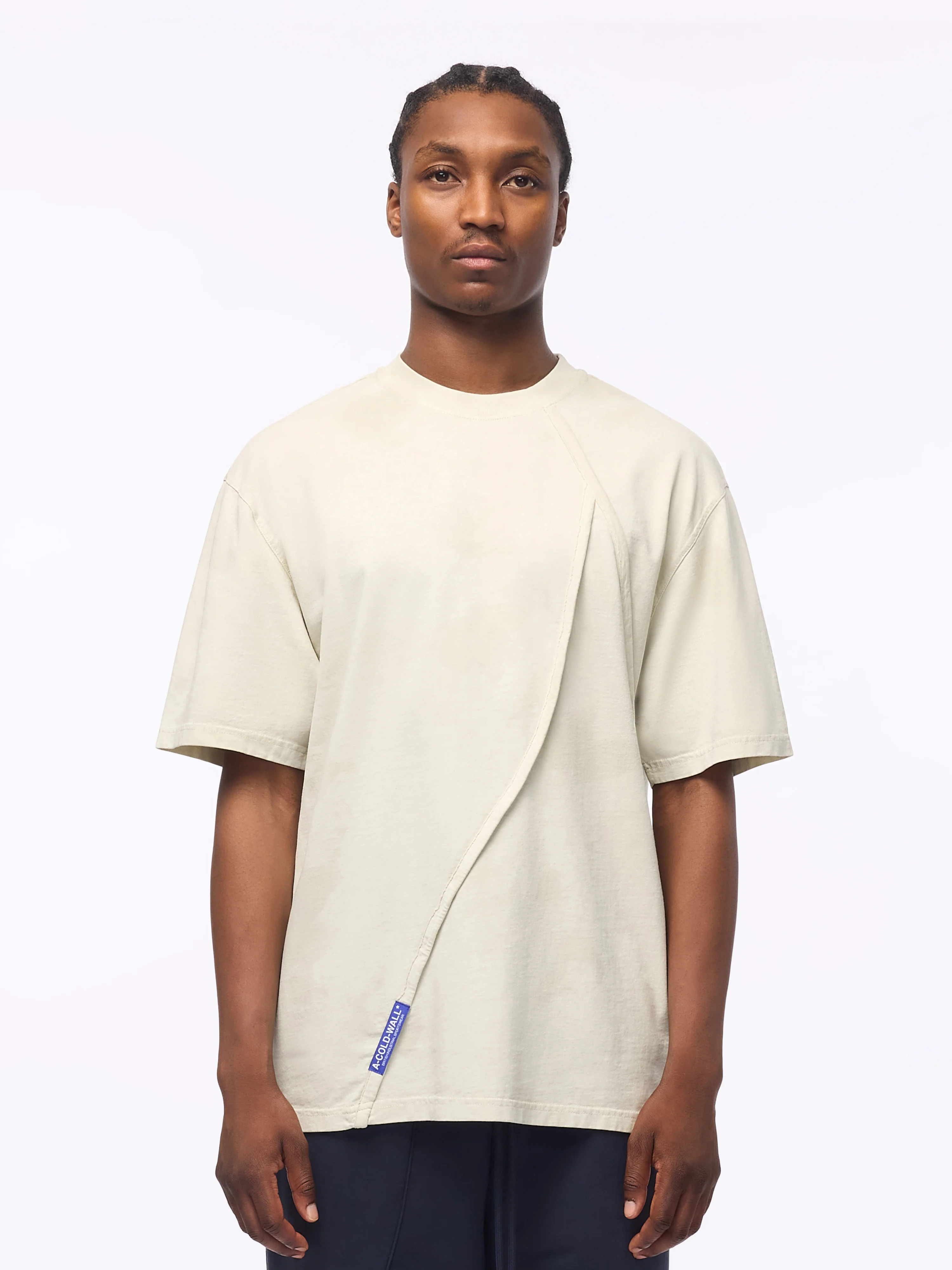 Relaxed-fit cotton T-shirt, featuring external contoured seams with bound edge finish. Garment dyed with tonal patina finish.